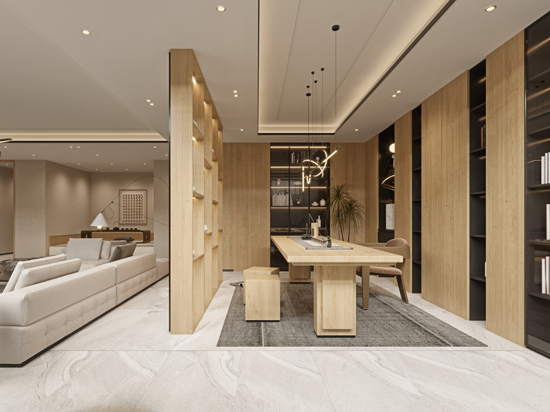 我们也可以将书房和茶室进行结合,设计出既有儒雅书香气息、又有宁静惬意茶香氛围的生活空间。