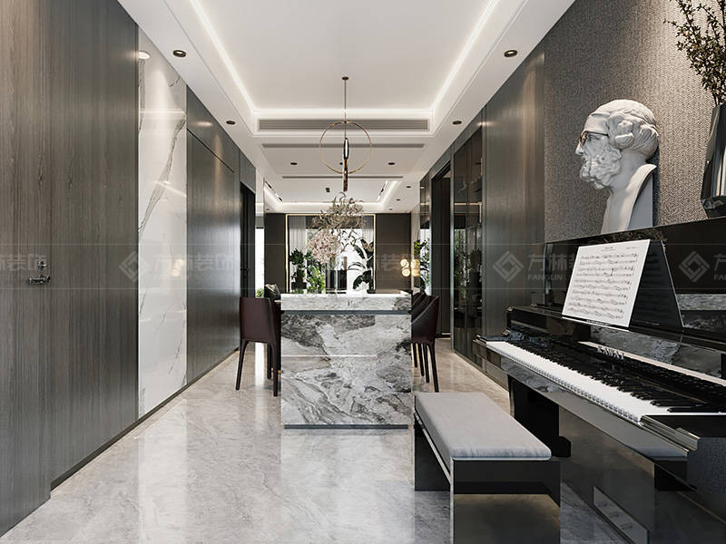 在用餐区临窗一侧的活动空间,融入钢琴元素,打造成开放式练琴室,彰显空间的文艺气质,同时也为生活增添情调。